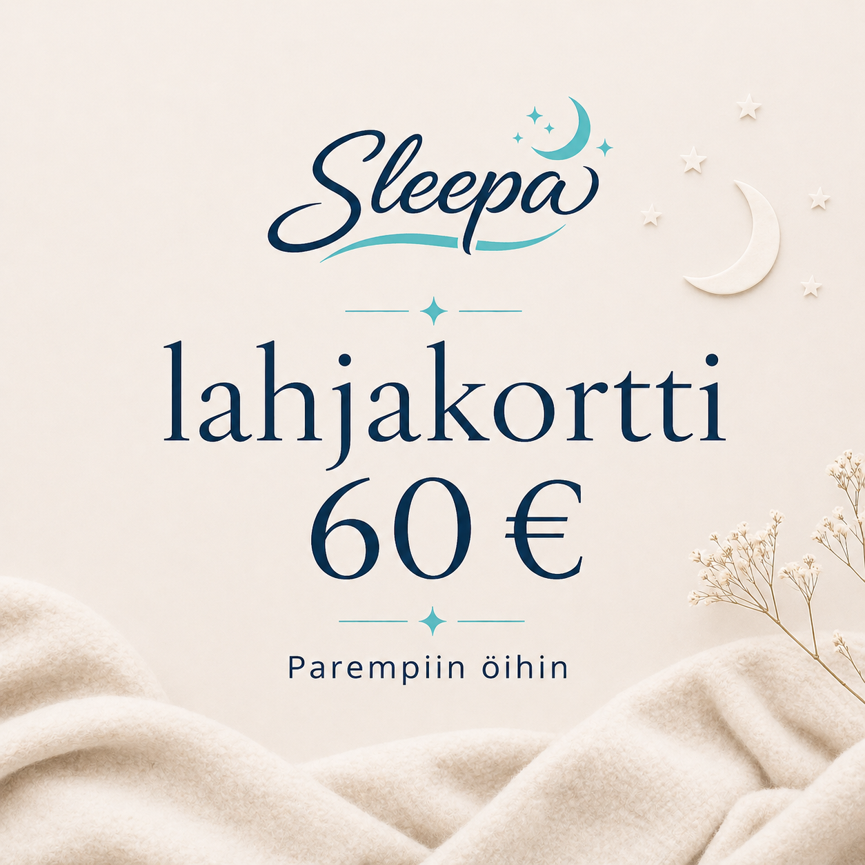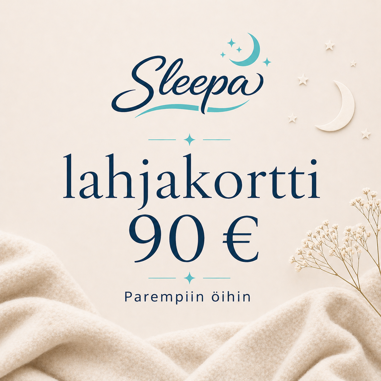 Sähköinen lahjakortti Sleepan tuotteisiin. Saat koodin, jonka kirjaamalla kassalla voit käyttää lahjakorttia.